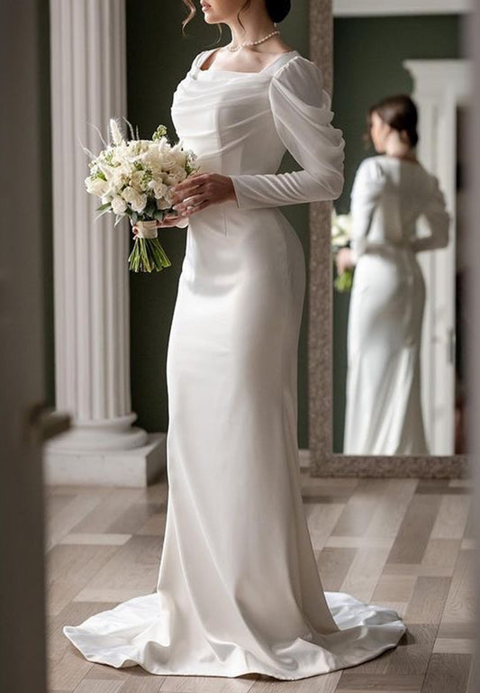Square Long Sleeves Sleek Mermaid Classic Wedding Dress