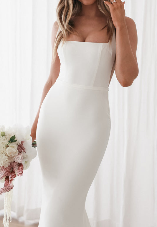 Square Straps Sleek Fitted Mermaid Sleeveless Wedding Dress