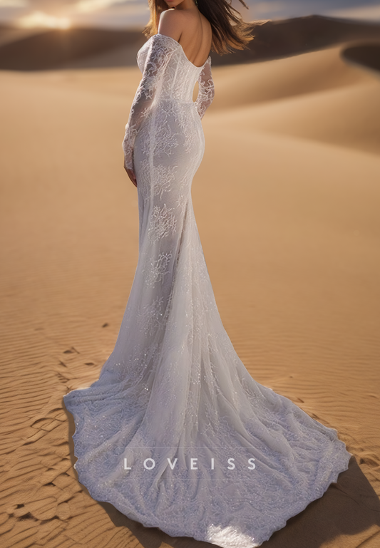 Off-Shoulder Long Sleeves Lace Appliques Mermaid Wedding Dress