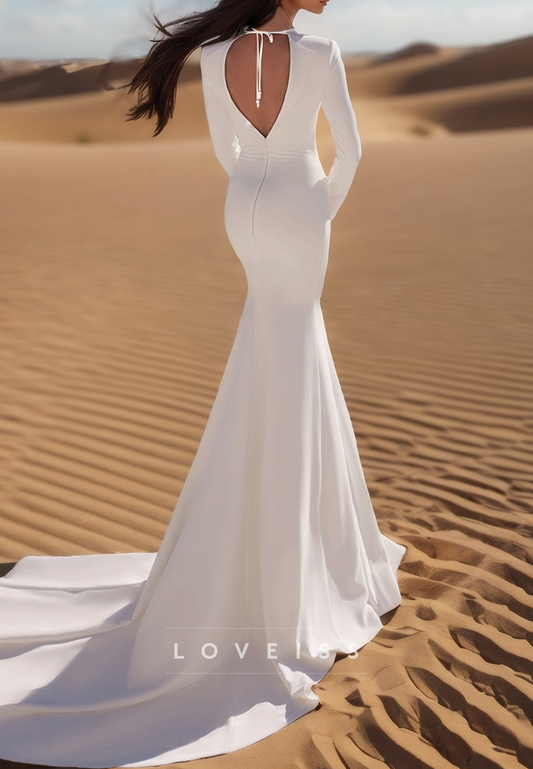 High Neck Long Sleeves Sleek Mermaid Wedding Dress