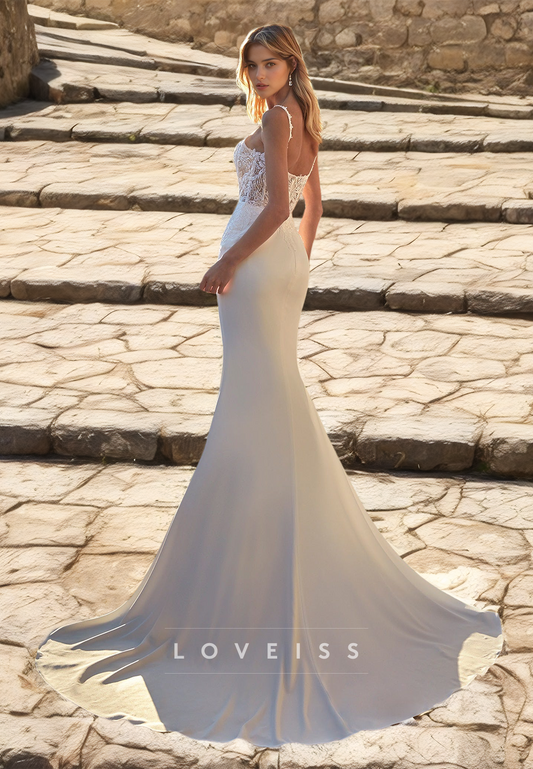 Squrae Spaghetti Straps Appliques Sleek Mermaid Wedding Dress