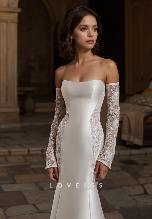 Off-Shoulder Strapless Appliques Tulle Mermaid Wedding Dress