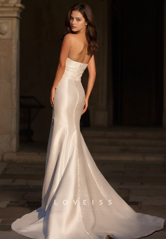 Sweetheart Strapless Pleated Satin A-Line Simple Wedding Dress