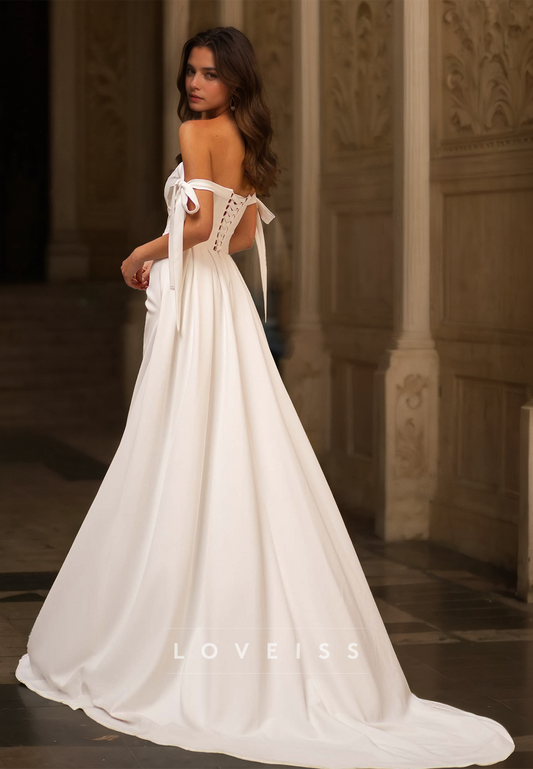 Off-Shoulder Strapless Pleated Satin Classic A-Line Wedding Dress
