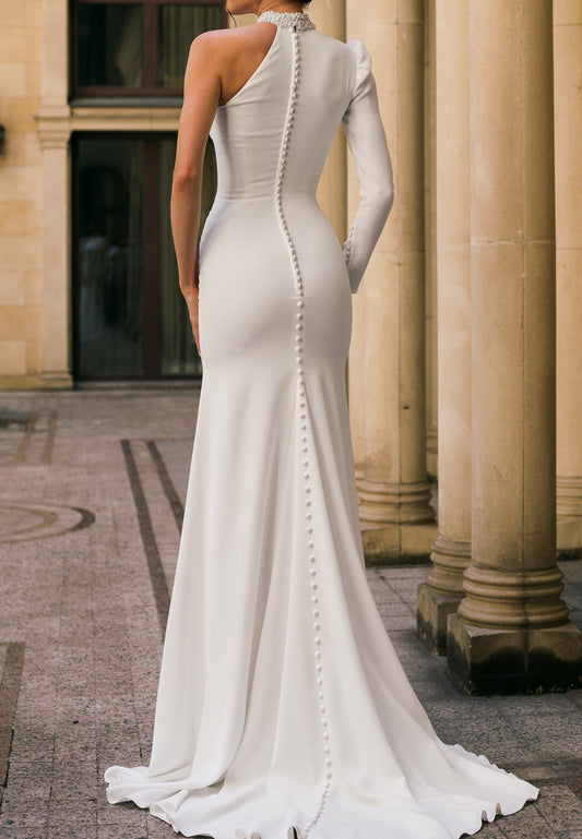 Halter Long Sleeves Sleek Mermaid Simple Beach Wedding Dress