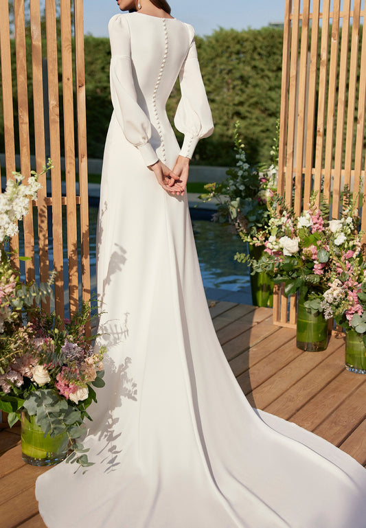 Off-Shoulder Long Sleeves Sleek Sheath Wedding Dress