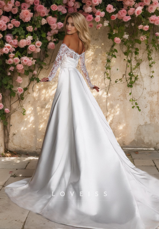 Off-Shoulder Strapless Pleated Satin A-Line Wedding Dress