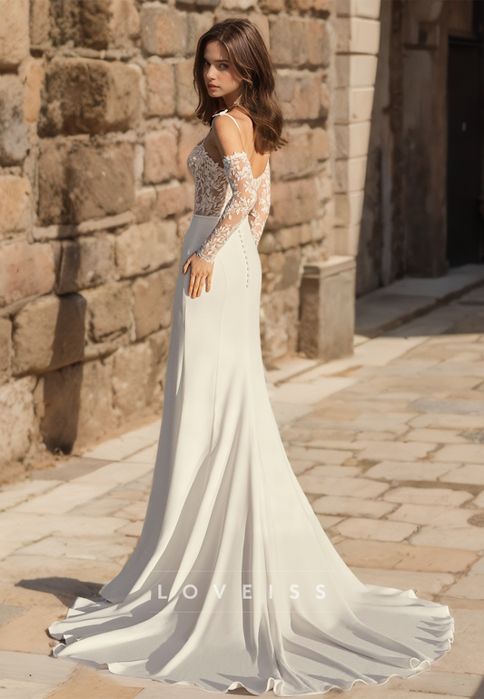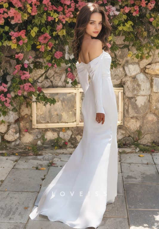 Off-Shoulder Long Sleeves Sleek Mermaid Wedding Dress