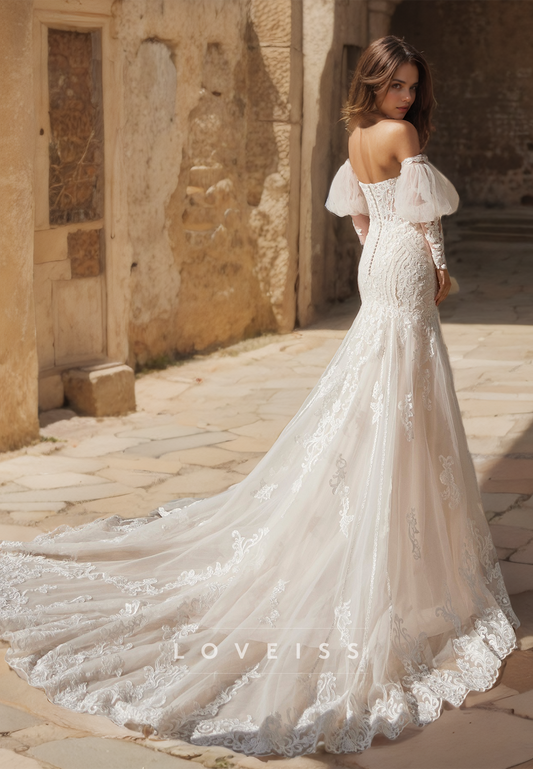 Off-Shoulder Long Sleeves Appliques Sleek Mermaid Wedding Dress