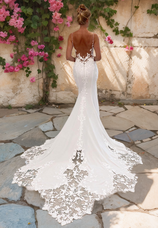 V-Neck Straps Appliques Mermaid Elegant Wedding Dress