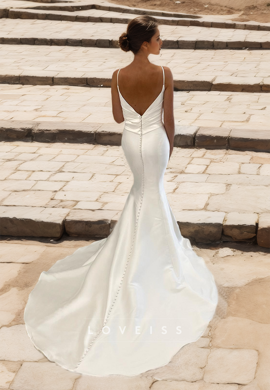 V-Neck Straps Sleek Simple Mermaid Beach Wedding Dress