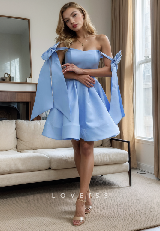 Off-Shoulder Sleeveless Bowknot Pleated A-Line Short Homecoming Dress