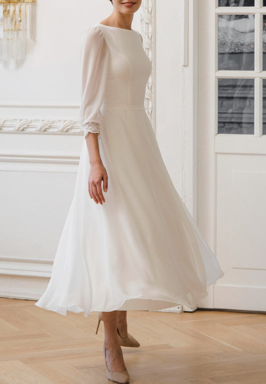Bateau Long Sleeves Sleek A-Line Wedding Dress