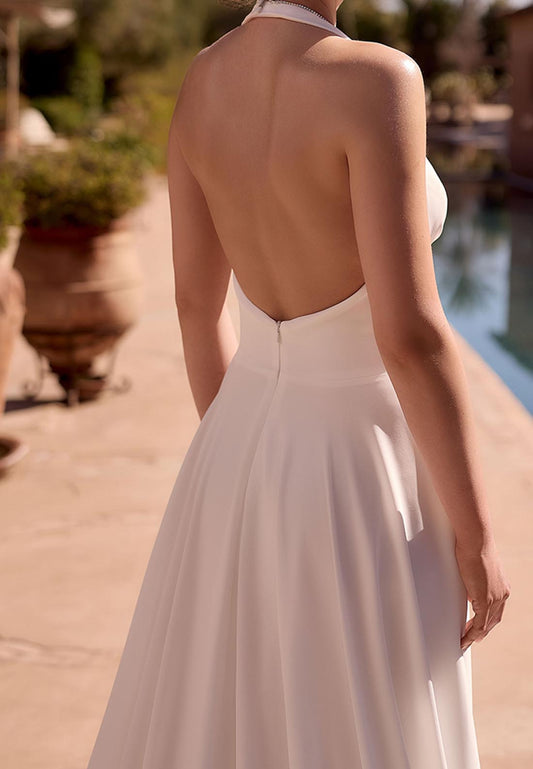 Halter V-Neck Backless Pleated A-Line Beach Wedding Dress