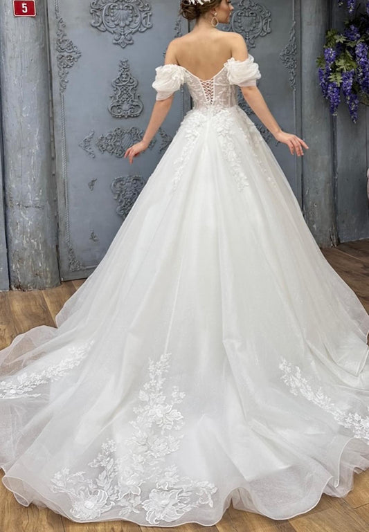 Off-Shoulder Appliques Sleveless Ball Gown Wedding Dress