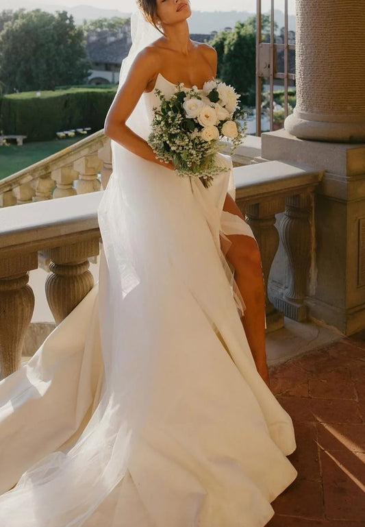 Sweetheart Sleeveless High Slit Sleek A-Line Wedding Dress