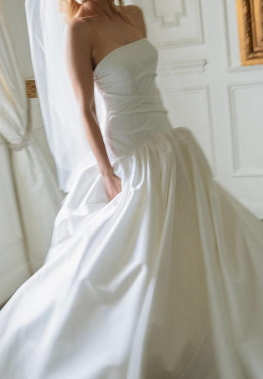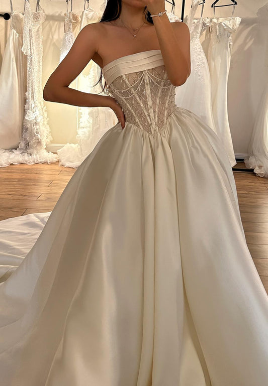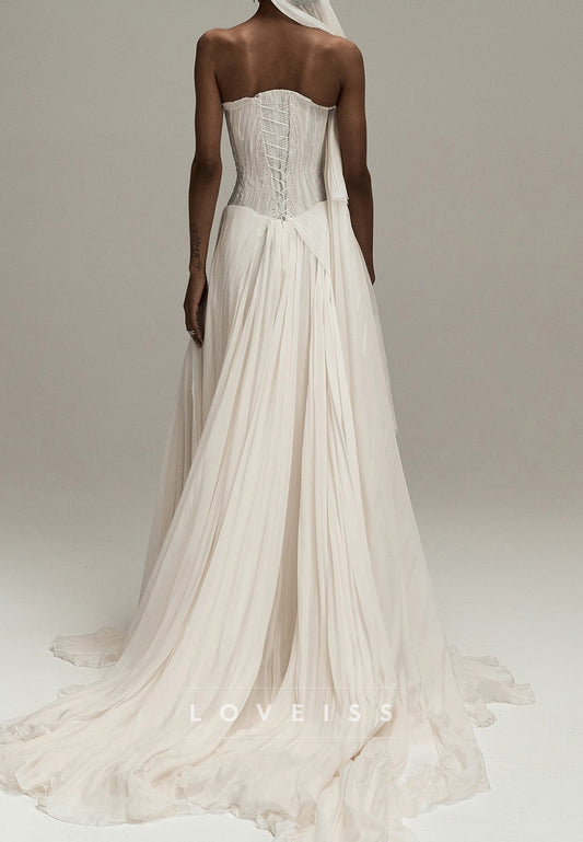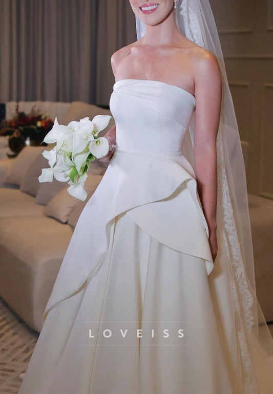 Straight Across Strapless Pleated A-Line Wedding Dress