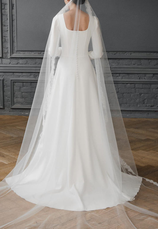 Scoop Long Sleeves Sleek A-Line Vintage Wedding Dress
