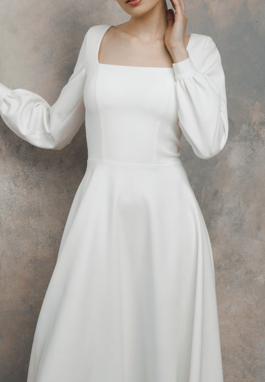 A-Line Princess Puff Sleeves Square Mini Wedding Dress