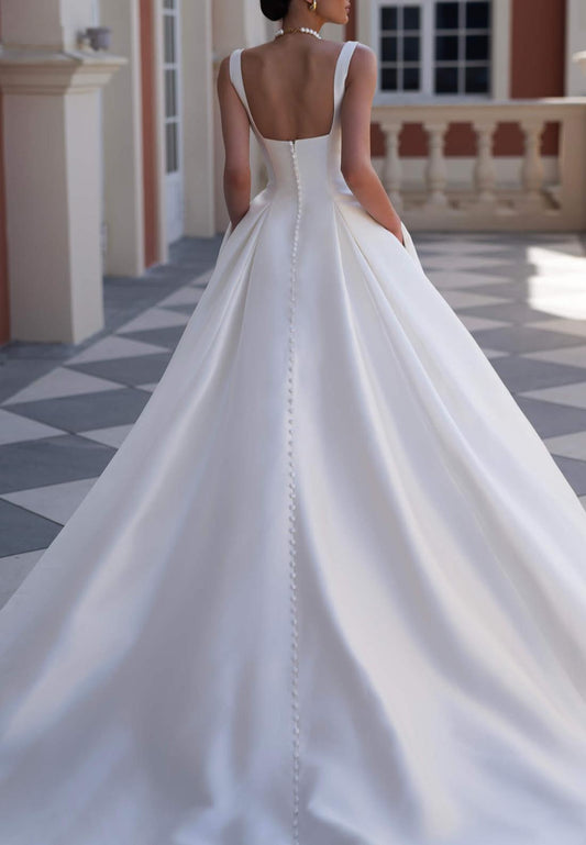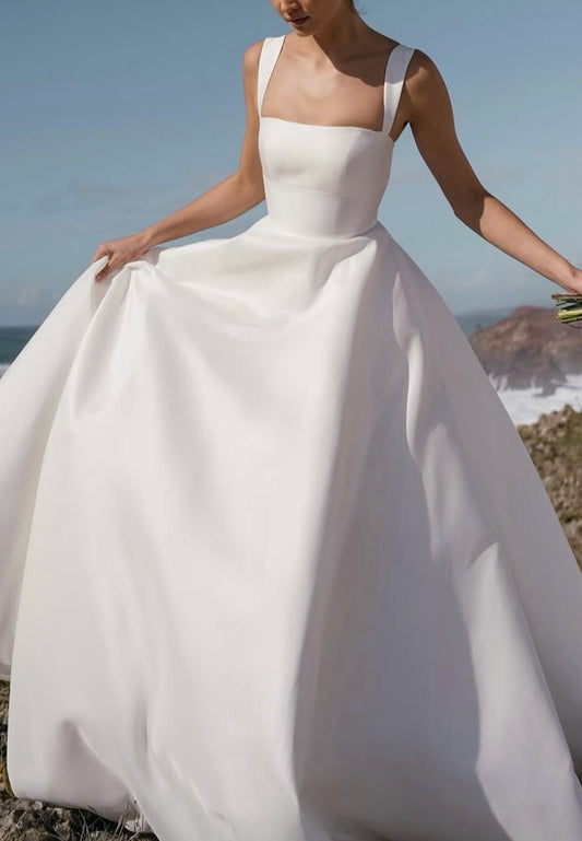 Square Straps Sleeveless Pleated Simple A-Line Wedding Dress