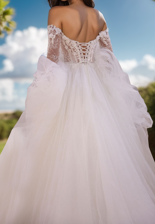 Off-Shoulder Long Sleeves Lace Appliques Ball Gown Wedding Dress