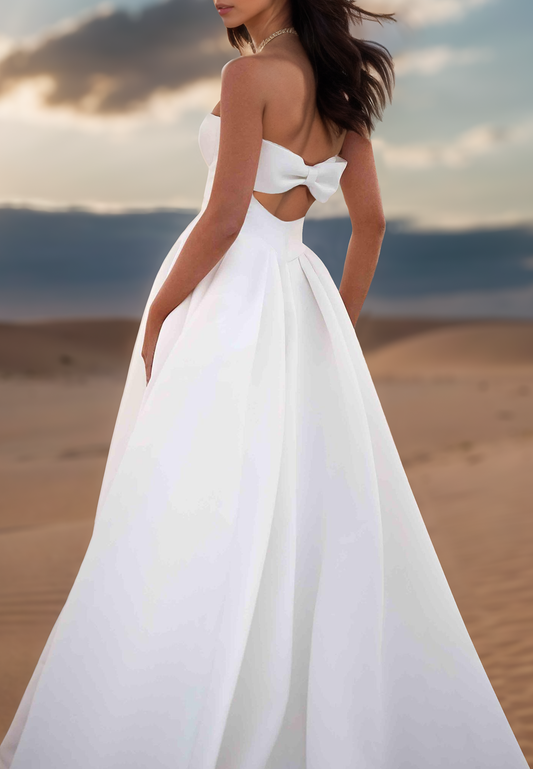 A-Line Strapless Sleeveless Satin Pleated Wedding Dress