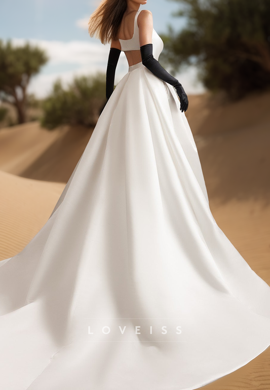 Square Sleeveless Sleek Satin A-Line Simple Classic Wedding Dress