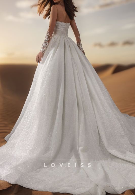 Sweetheart Long Sleeves Beaded Pleatedd Ball Gown Wedding Dress