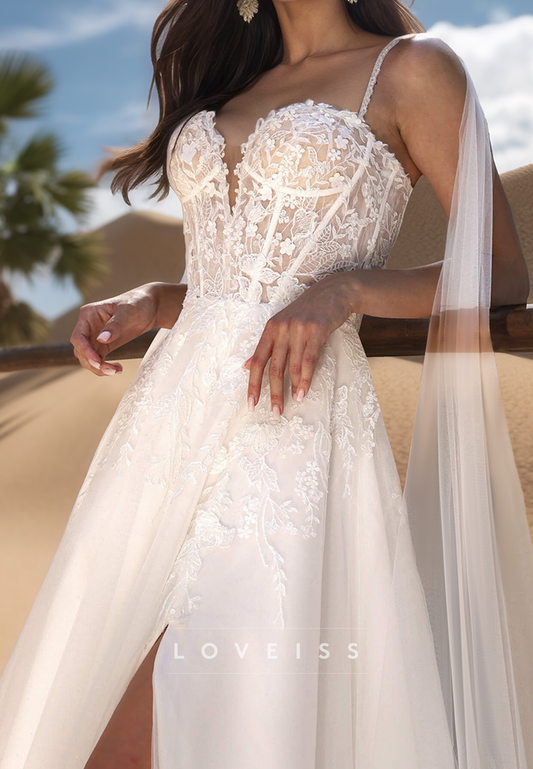 Sweetheart Spaghetti Straps Lace Appliques A-Line Wedding Dress