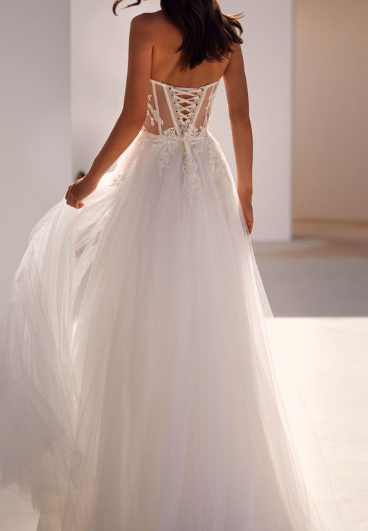 Sweetheart Strapless Appliques Tulle A-Line Beach Wedding Dress