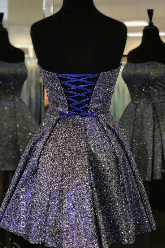 S6014 - Sexy & Hot V neck SCriss-Cross Straps Sequined Homecoming Holiday Party Dress