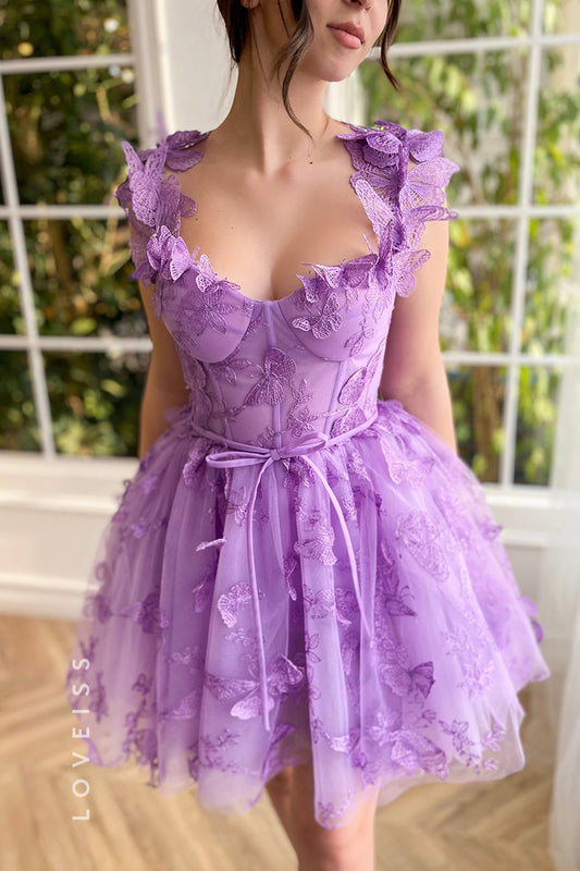 S6003 - Chic & Modern V neck Lace Floral Embellished Homecoming Dress