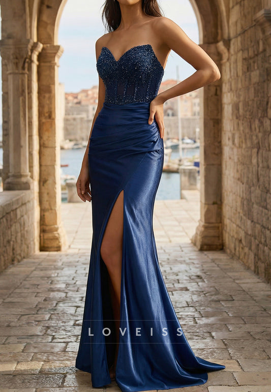 Sweetheart Beaded Side Slit Mermaid Prom Dress