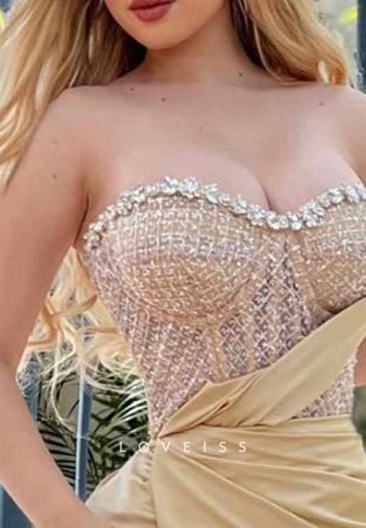Sweetheart Beaded Sparkly Side Slit Sheath Prom Dress