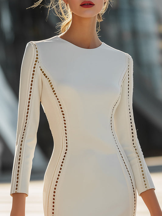 White Zip-Front Fitted Dress With Sculpted Shoulders