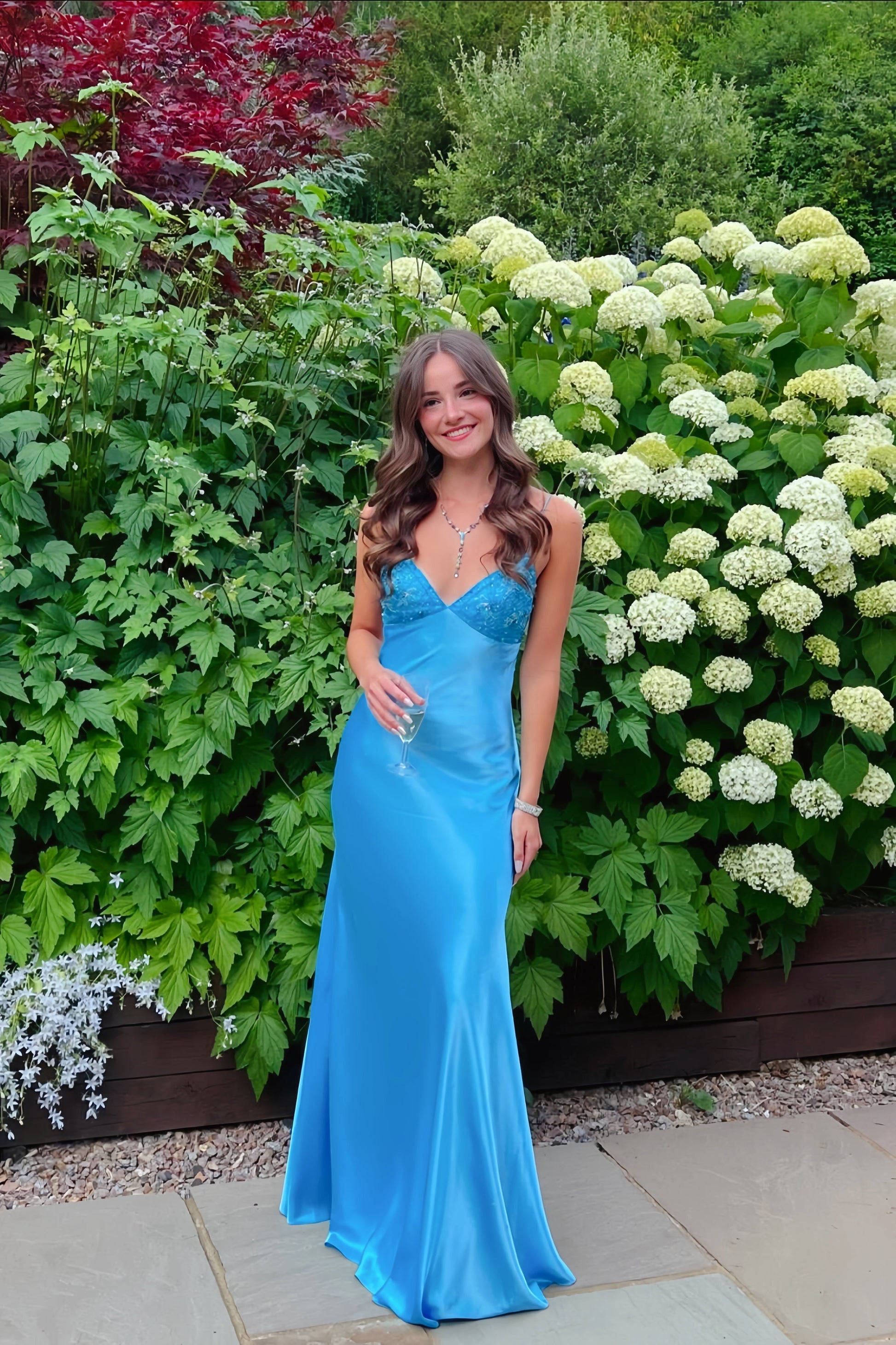 Beaded Purple Soft Satin Sheath Long Dress