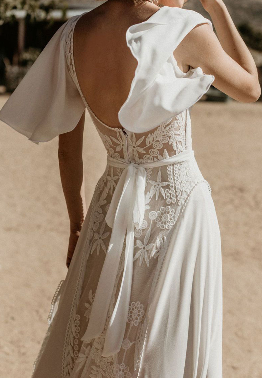 V-Neck Sleeves Chiffon Appliques A-Line Boho Wedding Dress