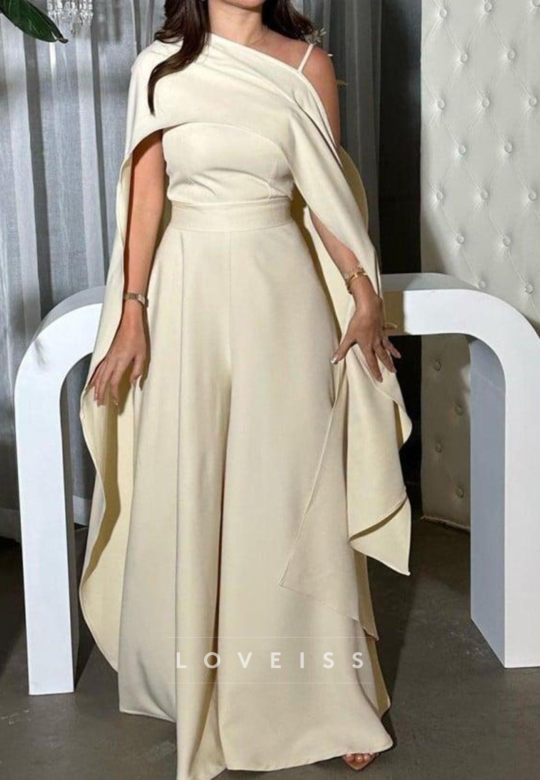 Redefine your formal wardrobe with this sophisticated jumpsuit that offers contemporary style and versatile elegance. The asymmetrical cut creates visual interest and a modern silhouette that stands apart from traditional formal wear. Delicate spaghetti straps provide refined support while maintaining an airy, graceful aesthetic. The tailored construction ensures a polished fit that flatters your frame while allowing comfortable movement throughout the evening. Perfect for formal events, upscale galas, cocktail parties, and special occasions where you want to make a distinctive statement. This expertly crafted piece combines fashion-forward design with timeless sophistication for the confident, style-conscious guest seeking an alternative to conventional formal dresses.