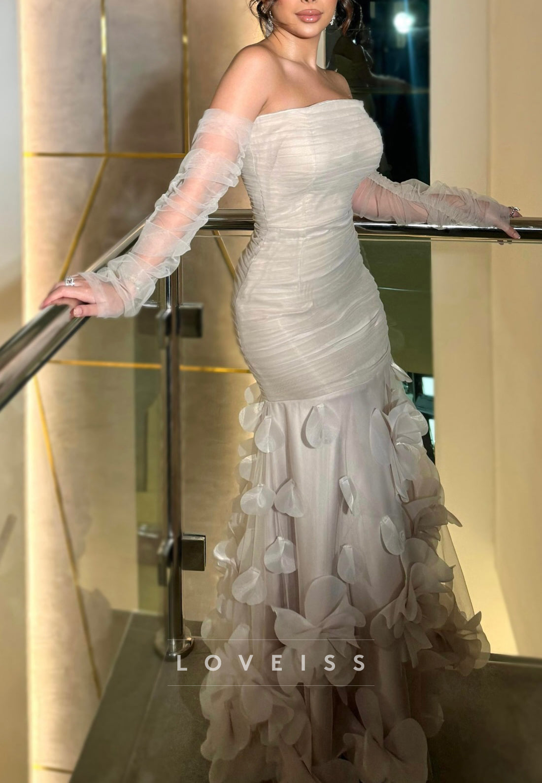 Embrace graceful elegance in this charming A-line evening dress with a striking straight-across neckline. Delicate floral embellishments dance across the bodice and skirt, adding romantic dimension and visual interest while maintaining refined restraint. The straight neckline creates a clean, contemporary silhouette that flatters the shoulders and collarbone with understated sophistication. The flowing A-line cut provides comfortable movement while creating a universally flattering profile that skims the body beautifully. The intricate floral detailing adds artisanal charm without overwhelming the design. An ideal selection for those seeking a dress that combines timeless femininity with modern sensibility—perfect for formal occasions where graceful beauty and wearable comfort are equally valued.
