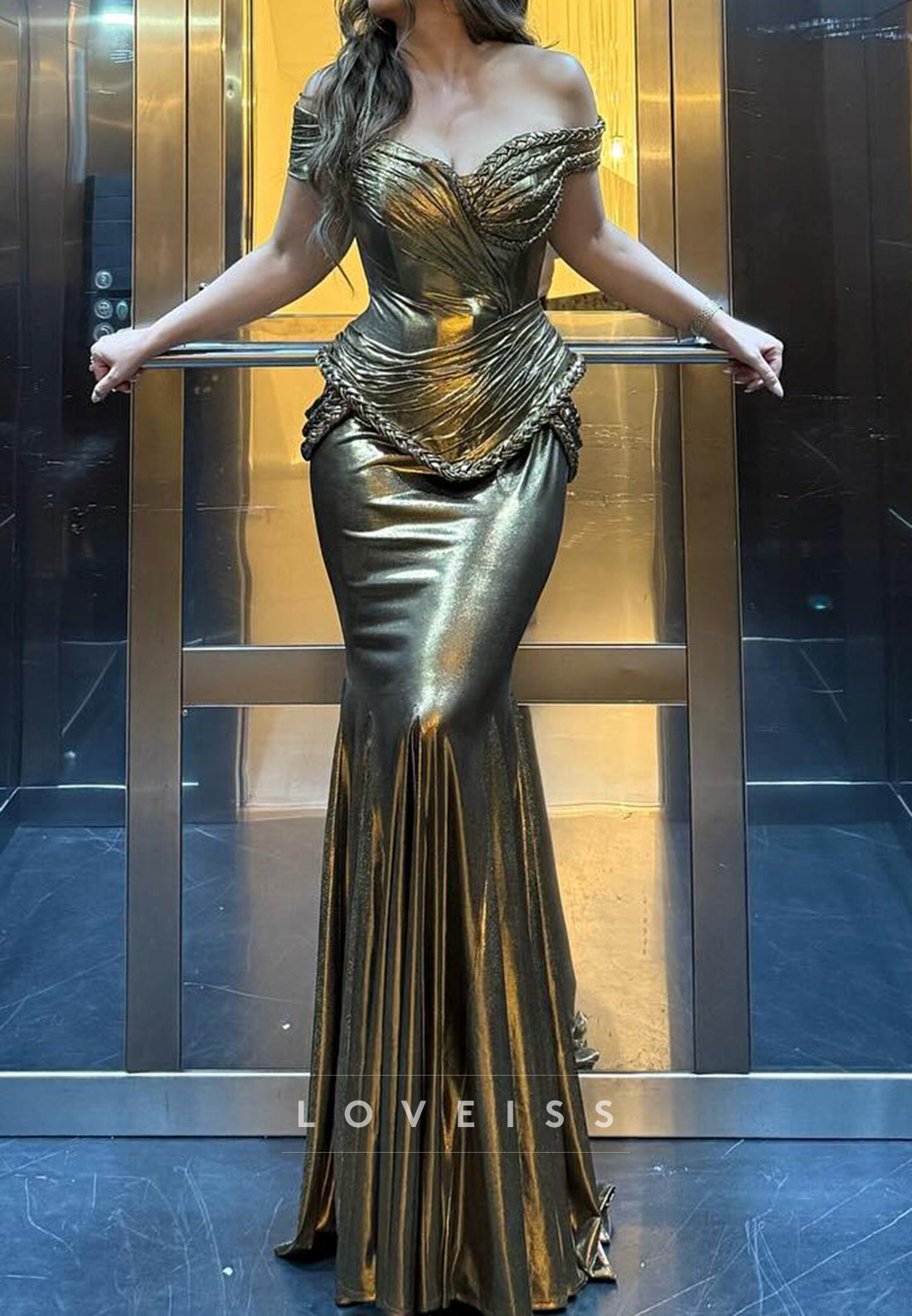 Off-Shoulder Sleeveless Sparkly Corset Mermaid Prom Dress